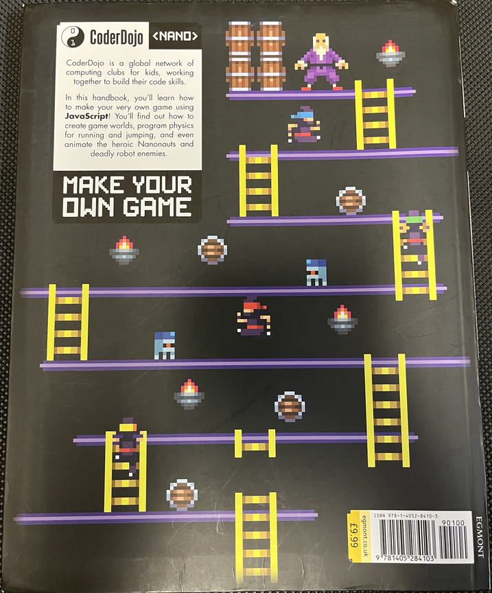 The example game referenced by the CoderDojo book (Front cover | Back cover) was originally meant only for PC. More and more children seem to use a smartphone or tablet more than a PC nowadays. Perhaps this is why the example game taught in the book may be considered outdated and the book not made available for very long.